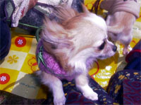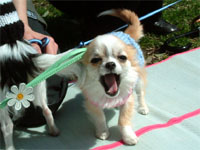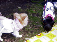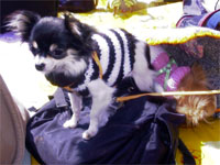 | 他のチワワちゃんがたくさんいるのは慣れていないんだよね〜。でもマーブルもウランも自分からご挨拶に行くんだよね。えらいね〜。 |