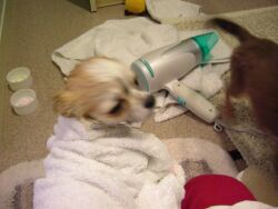 この日はチャビー、はじめてのお風呂・・はじめが肝心♪ 怯えてたけど合格ですわ〜