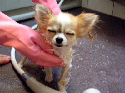 マーブルはホントに細いので軽く何度も洗わないといけないんです。でも小さいのでシャンプーの量は少しでいいんだよね。