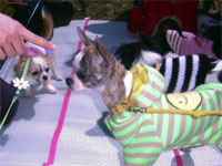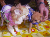 | 他のチワワちゃんがたくさんいるのは慣れていないんだよね〜。でもマーブルもウランも自分からご挨拶に行くんだよね。えらいね〜。 |